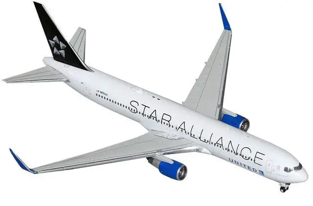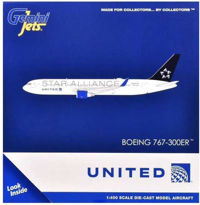 Brand new 1/400 scale diecast airplane model of Boeing 767-300ER Commercial Aircraft "United Airlines Star Alliance" (N76516) White with Black Tail die cast model by GeminiJets.