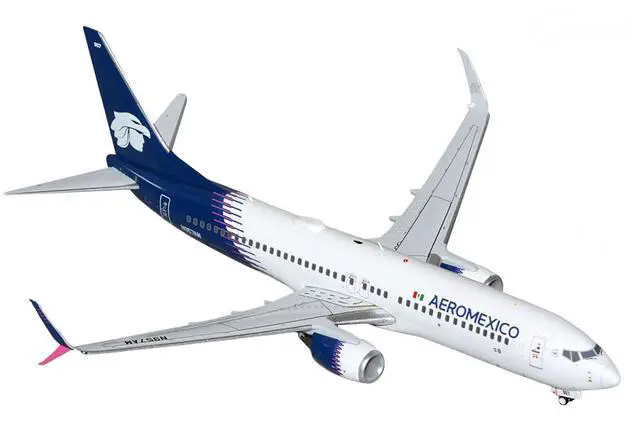 Brand new 1/200 scale diecast airplane model of Boeing 737-800 Commercial Aircraft "AeroMexico" (N957AM) White with Dark Blue Tail "Gemini 200" Series die cast model by GeminiJets.