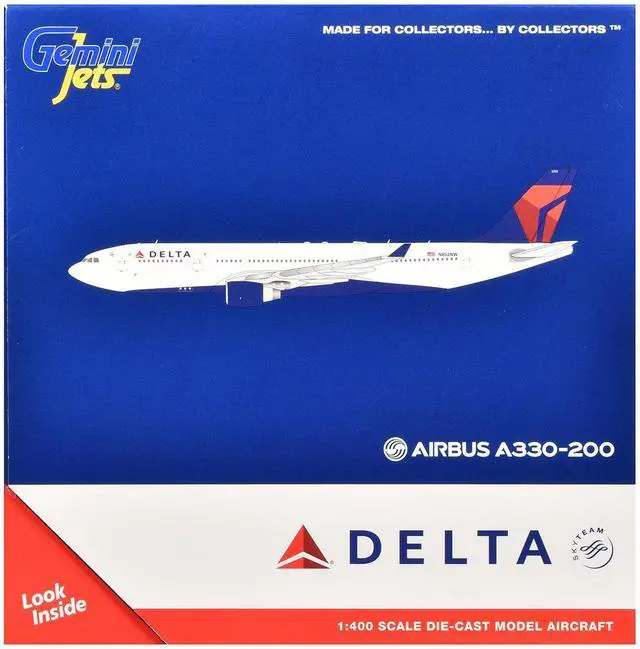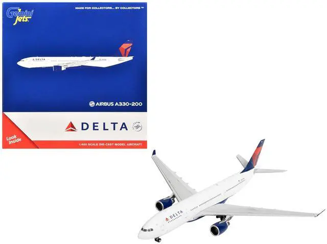 Brand new 1/400 scale diecast airplane model of Airbus A330-200 Commercial Aircraft "Delta Air Lines" (N852NW) White with Red and Blue Tail die cast model by GeminiJets.
