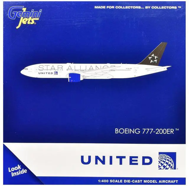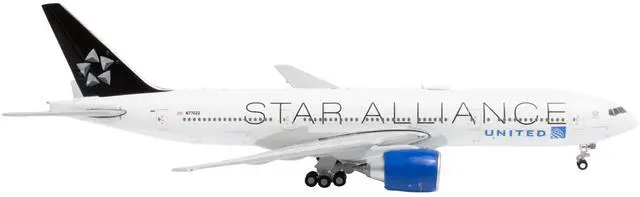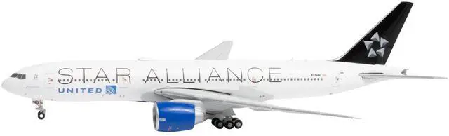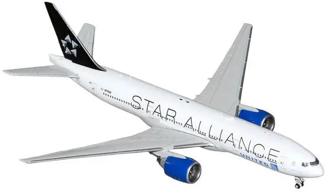 Brand new 1/400 scale diecast airplane model of Boeing 777-200ER Commercial Aircraft "United Airlines Star Alliance" (N77022) White with Black Tail die cast model by GeminiJets.
