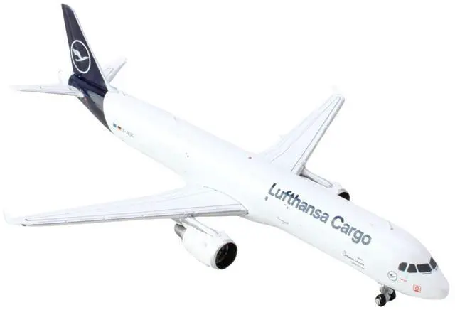 Brand new 1/400 scale diecast airplane model of Airbus A321P2F Commercial Aircraft "Lufthansa Cargo" (D-AEUC) White with Blue Tail die cast model by GeminiJets.