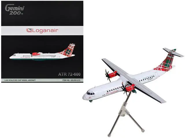 Brand new 1/200 scale diecast airplane model of ATR 72-600 Commercial Aircraft "Loganair - Isle of Man's Airline" (G-LMTF) White with Green and Red Plaid Tail "Gemini 200" Series die cast model by GeminiJets.