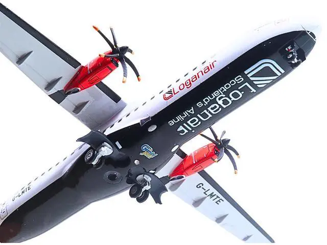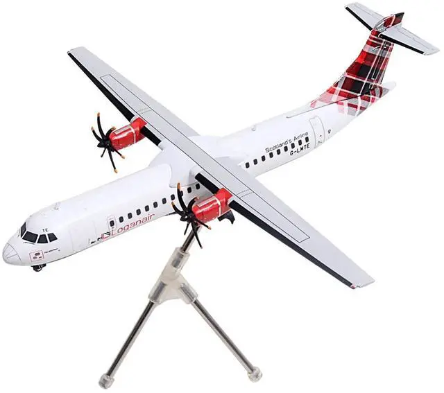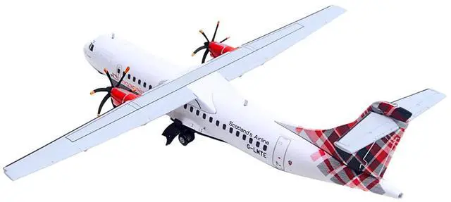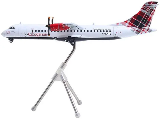 Brand new 1/200 scale diecast airplane model of ATR 72-600 Commercial Aircraft "Loganair - Scotland's Airline" (G-LMTE) White with Red Plaid Tail "Gemini 200" Series die cast model by GeminiJets.