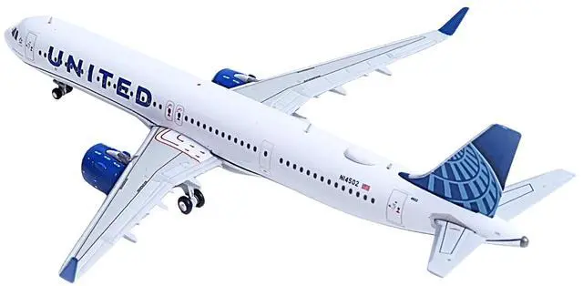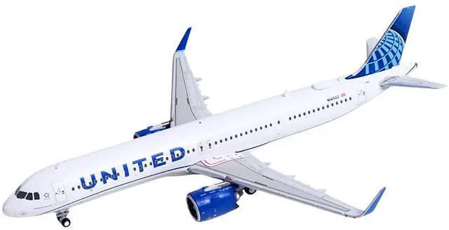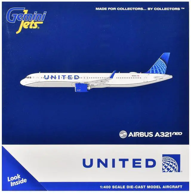 Brand new 1/400 scale diecast airplane model of Airbus A321neo Commercial Aircraft "United Airlines" (N14502) White with Blue Tail die cast model by GeminiJets.