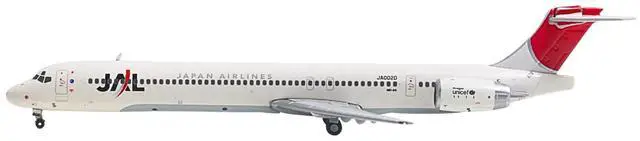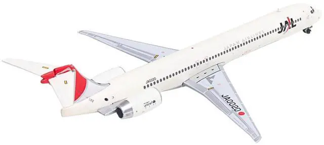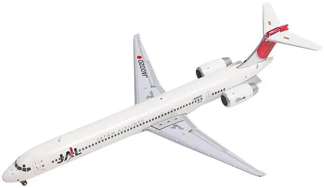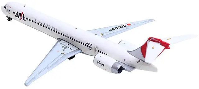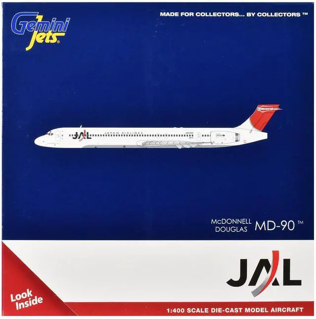 Brand new 1/400 scale diecast airplane model of McDonnell Douglas MD-90 Commercial Aircraft "Japan Airines" (JA002D) White with Red Tail die cast model by GeminiJets.