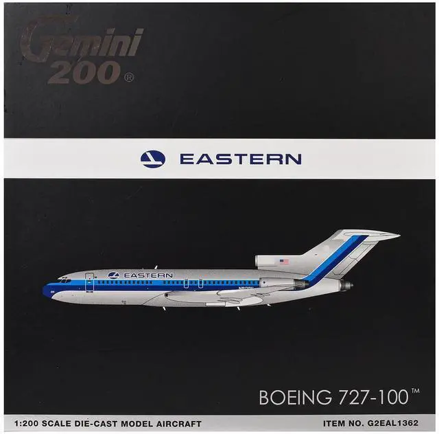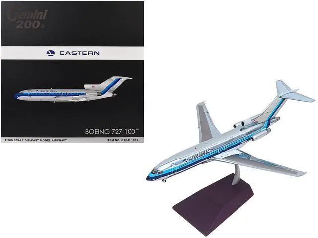 Brand new 1/200 scale diecast airplane model of Boeing 727-100 Commercial Aircraft "Eastern Air Lines" (N8120N) Silver with Blue Stripes "Gemini 200" Series die cast model by GeminiJets.
