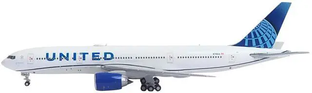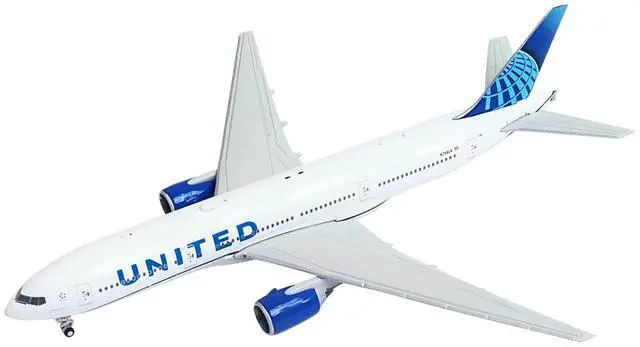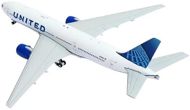 Brand new 1/400 scale diecast airplane model of Boeing 777-200ER Commercial Aircraft "United Airlines" (N798UA) White with Blue Tail die cast model by GeminiJets.