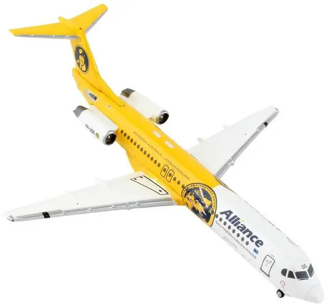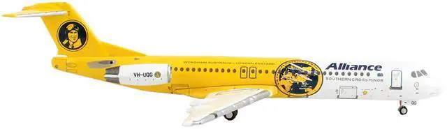 Brand new 1/400 scale diecast airplane model of Fokker F100 Commercial Aircraft "Alliance Airlines - Southern Cross Minor" (VH-UQG) White and Yellow die cast model by GeminiJets.
