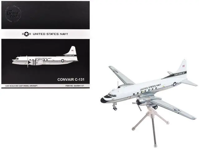 Brand new 1/200 scale diecast airplane model of Convair C-131 Samaritan Transport Aircraft "United States Navy - NAS Guantanamo Bay" (141017) White and Gray "Gemini 200" Series die cast model by GeminiJets.