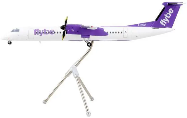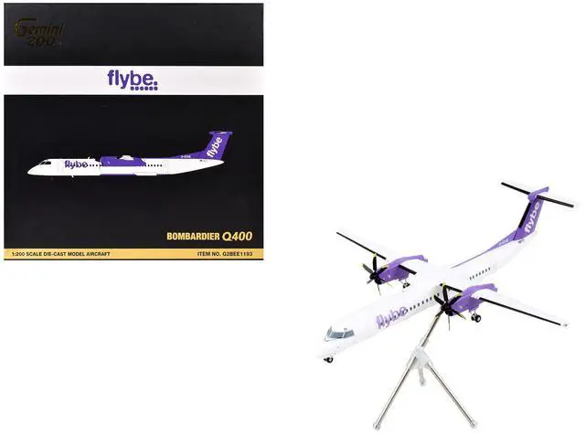 Brand new 1/200 scale diecast airplane model of Bombardier Q400 Commercial Aircraft "Flybe" (G-ECOE) White with Purple Tail "Gemini 200" Series die cast model by GeminiJets.