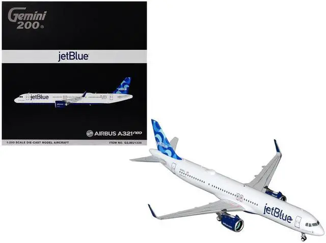 Brand new 1/200 scale diecast airplane model of Airbus A321neo Commercial Aircraft "JetBlue Airways" (N2180J) White with Blue Tail "Gemini 200" Series die cast model by GeminiJets.