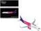 Brand new 1/200 scale diecast airplane model of Airbus A321neo Commercial Aircraft "Wizz Air" (G-WUNB) White and Pink with Purple Tail "Gemini 200" Series die cast model by GeminiJets.