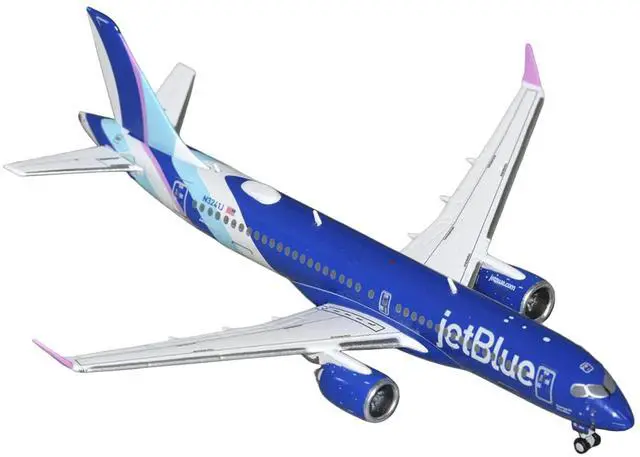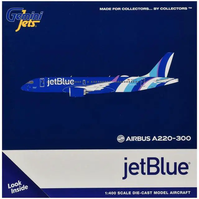 Brand new 1/400 scale diecast airplane model of Airbus A220-300 Commercial Aircraft "JetBlue Airways" (N3241J) Blue with Striped Tail die cast model by GeminiJets.