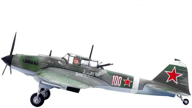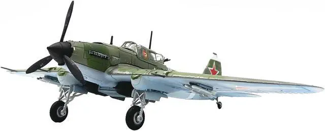 Brand new 1/72 scale diecast airplane model of Ilyushin IL-2M3 Sturmovik Aircraft #100 Green Camouflage "Piloted by Vasily Emelyanenko" Soviet Air Force die cast model by Legion.