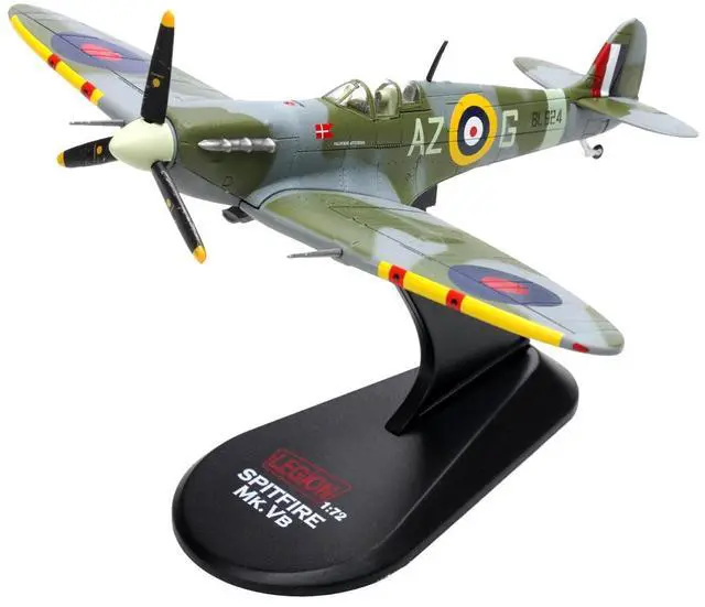 Brand new 1/72 scale diecast airplane model of Supermarine Spitfire Mk Vb Fighter Aircraft "BL924, Pilot Officer Aksel Svendsen, Danish Presentation Spitfire, Valdemar Atterdag, No. 234 Madras Presidency Squadron" (1942) Royal Air Force die cast model by Legion.