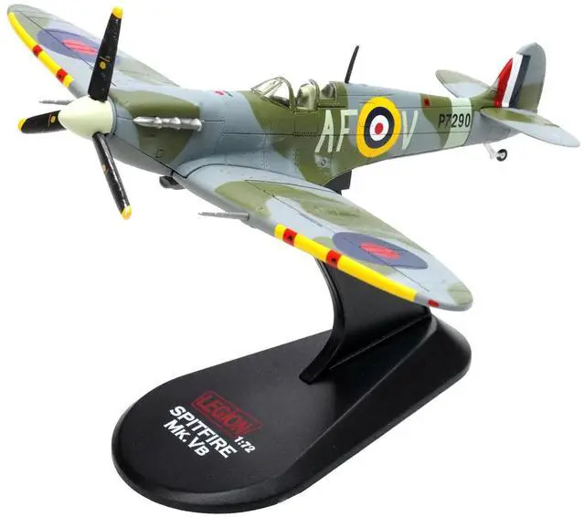Brand new 1/72 scale diecast airplane model of Supermarine Spitfire Mk IIa Fighter Aircraft "P7290, Air Fighting Development Unit, RAF Duxford" (1942) Royal Air Force die cast model by Legion.