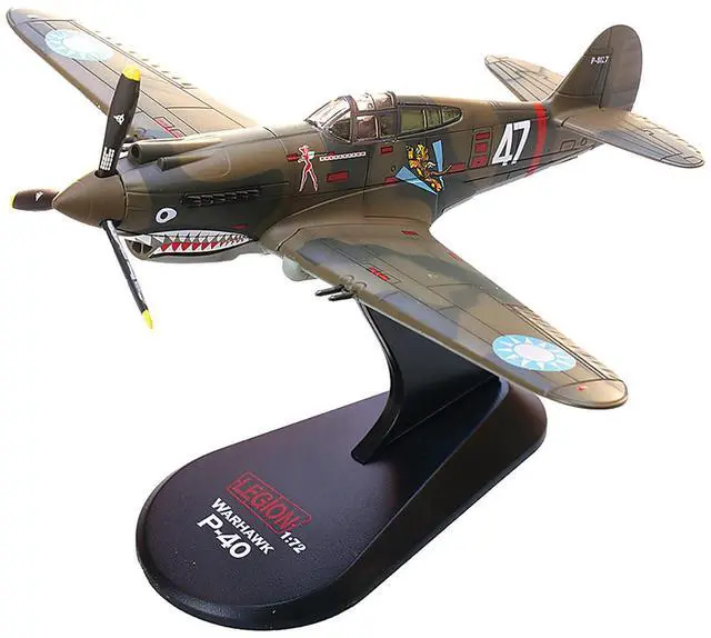 Brand new 1/72 scale diecast airplane model of Curtiss P-40B/C Warhawk Fighter Aircraft "White 47, Robert T. Smith, 3rd Squadron, Hell's Angels, Chinese Air Force, Burma" (1942) 1st American Volunteer Group die cast model by Legion.