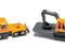 Brand new diecast model of Truck with Low Loader Trailer and Excavator Yellow die cast model by Siku.