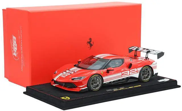 Brand new 1/18 scale car model of 2023 Ferrari 296 Challenge #32 "Launch Version" Red with White Stripes with DISPLAY CASE Limited Edition to 296 pieces Worldwide model car by BBR Models.