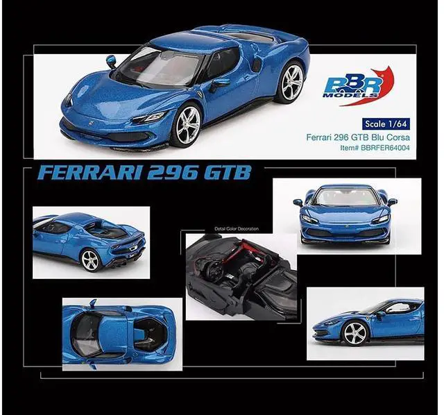 Brand new 1/64 scale diecast car model of Ferrari 296 GTB Blue Corsa die cast model car by BBR Models.