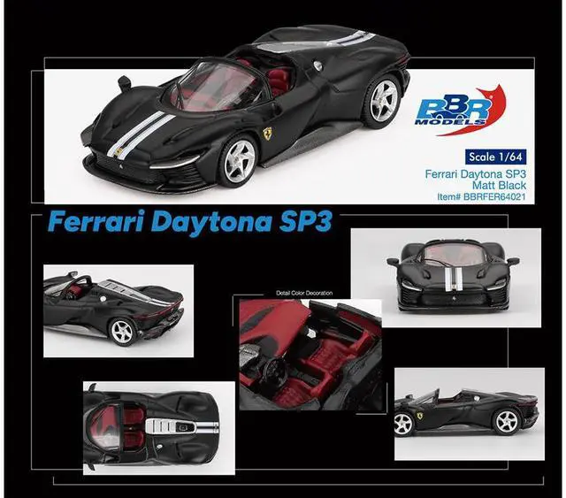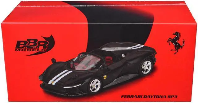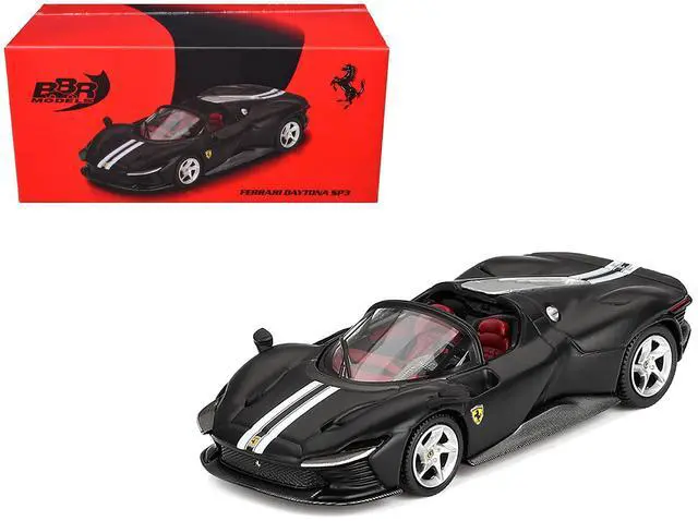 Brand new 1/64 scale diecast car model of Ferrari Daytona SP3 Matt Black with White Stripes and Red Interior die cast model car by BBR Models.