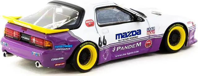 Brand new 1/64 scale diecast model car of Mazda RX-7 FC3S Pandem RHD (Right Hand Drive) #66 White and Purple with Graphics "Hobby64" Series die cast model car by Tarmac Works.