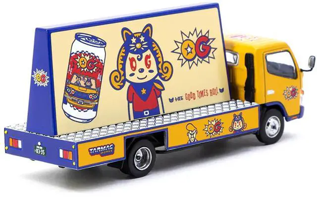 Brand new 1/64 scale diecast car model of Mitsubishi Fuso Canter Mobile Ad Truck RHD (Right Hand Drive) "OG Beer" Yellow with Graphics "Truck64" Series die cast model car by Tarmac Works.