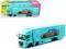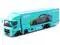 Truck made of diecast metal with some plastic parts, transporter is plastic.