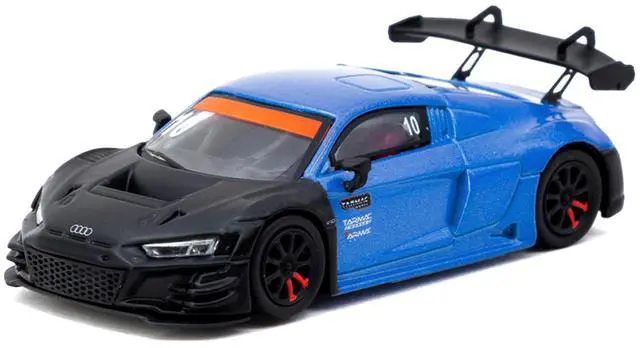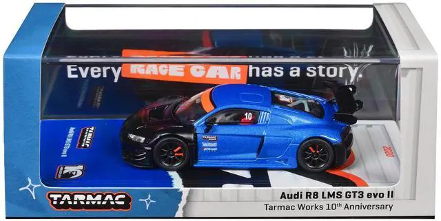 Brand new 1/64 scale diecast model car of Audi R8 LMS GT3 evo II #10 "Tarmac Works 10th Anniversary" Blue Metallic and Matt Black "Hobby64" Series die cast model car by Tarmac Works.