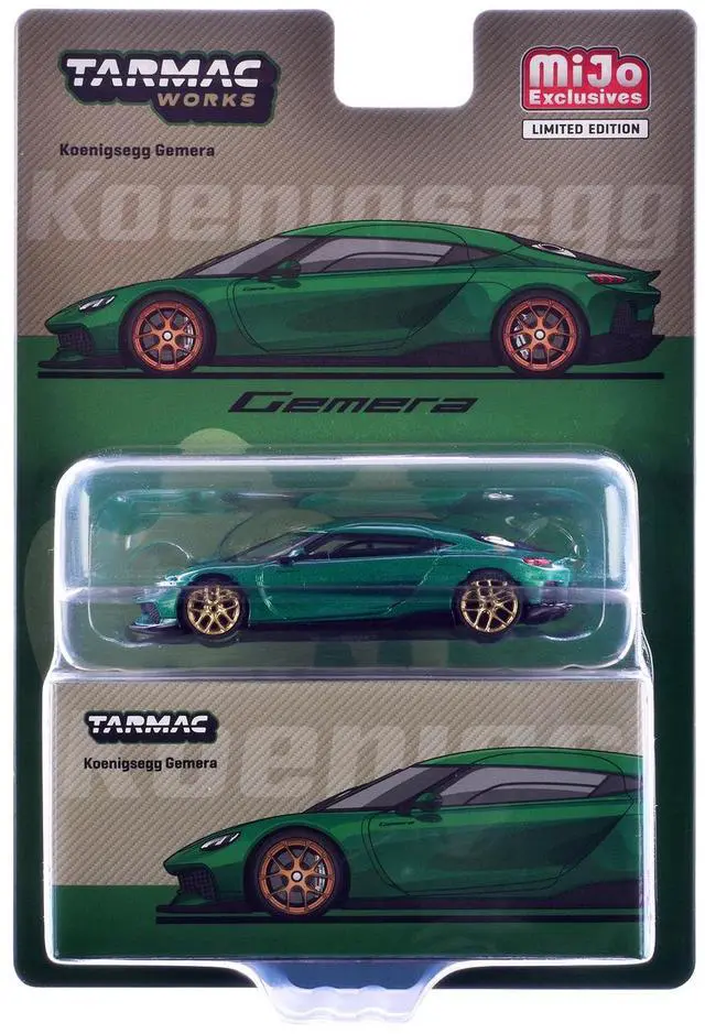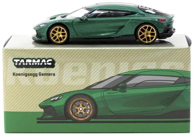 Brand new 1/64 scale diecast model of Koenigsegg Gemera Green Metallic "Global64" Series die cast model by Tarmac Works.