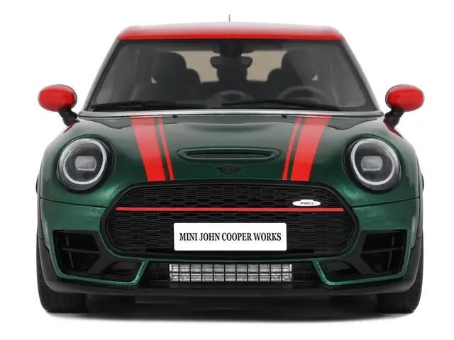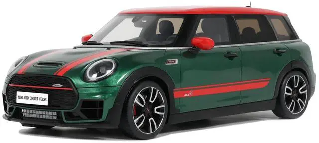 Brand new 1/18 scale car model of 2021 Mini Clubman (F54) JCW British Green Metallic with Red Top and Stripes Limited Edition to 999 pieces Worldwide model car by Otto Mobile.