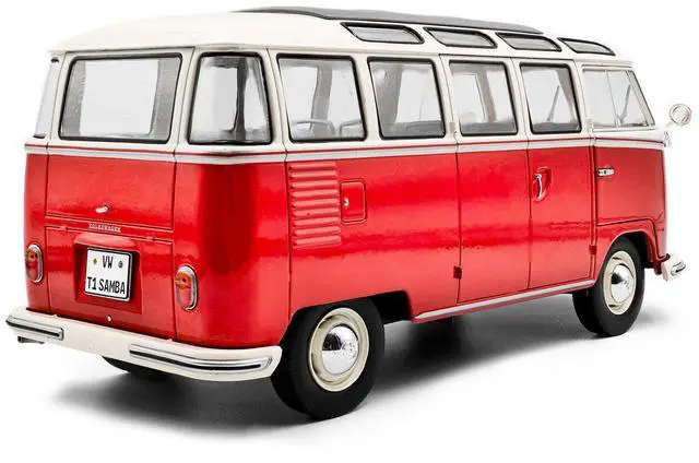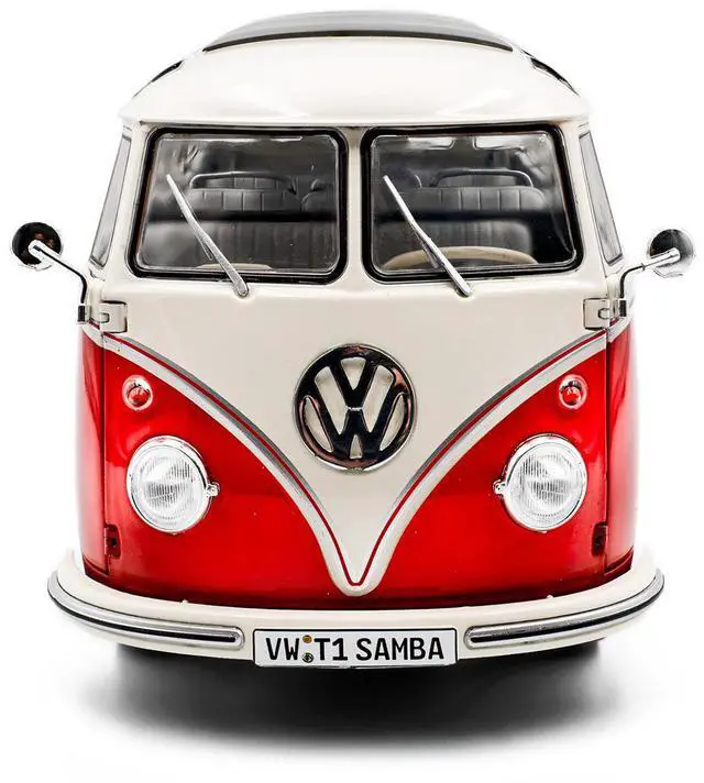 Brand new 1/18 scale diecast car model of 1962 Volkswagen T1 Samba Bus Red and White die cast model car by Solido.