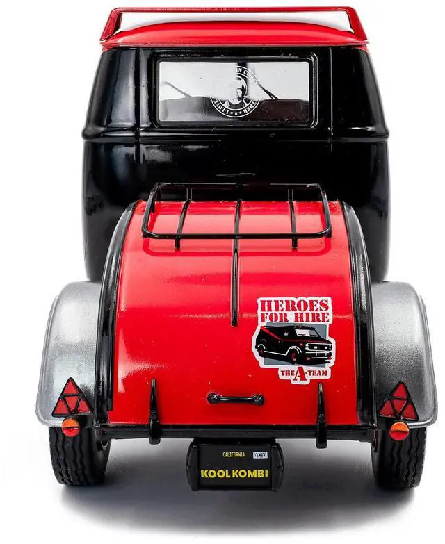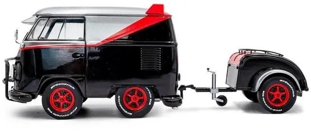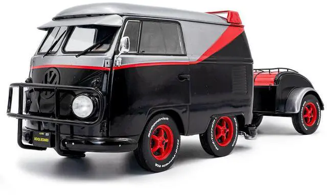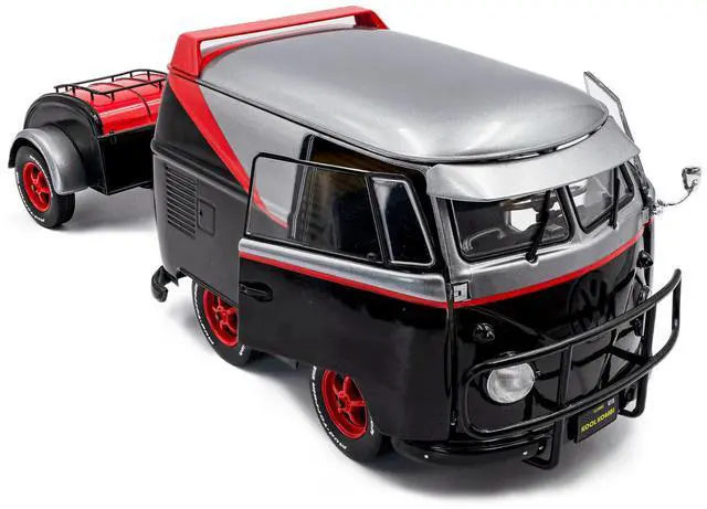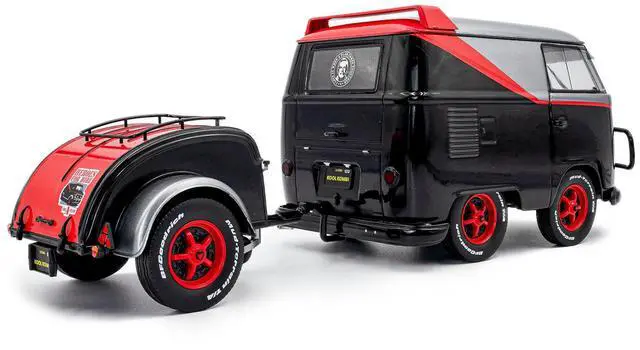 Brand new 1/18 scale diecast car model of 2024 Volkswagen Kool Kombi Sport Van with Trailer Black and Silver with Red Stripe die cast model car by Solido.