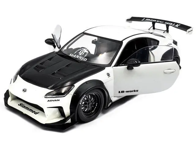 Brand new 1/18 scale diecast car model 2024 Toyota GR86 LBWK Body Kit RHD (Right Hand Drive) Pearl White with Carbon Hood die cast model car by Solido.