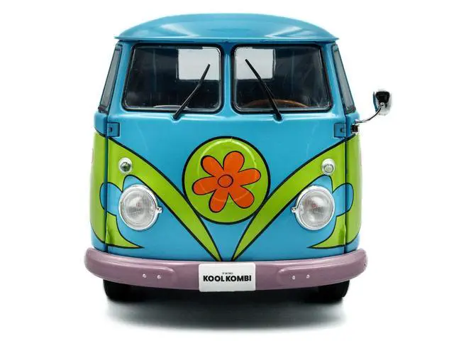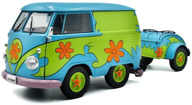 Brand new 1/18 scale diecast car model of 2024 Volkswagen Kool Kombi Van with Trailer "Ghost Hunter" Blue and Green with Graphics die cast model car by Solido.