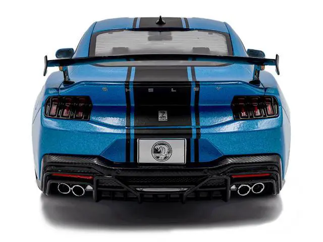 Brand new 1/18 scale diecast car model of 2024 Ford Shelby Mustang Super Snake Grabber Blue Metallic with Black Stripes die cast model car by Solido.