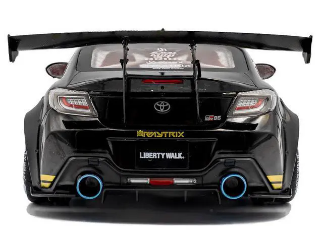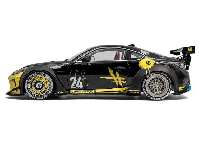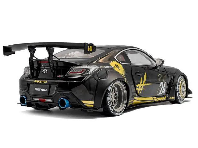 Brand new 1/18 scale diecast car model 2024 Toyota GR86 Liberty Walk Body Kit RHD (Right Hand Drive) #24 Black with Gold Graphics die cast model car by Solido.