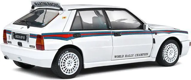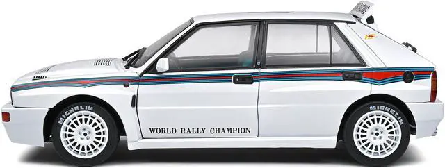 Brand new 1/18 scale diecast car model of 1992 Lancia Delta HF Integrale Evo 1 Martini 6 White with Blue and Red Stripes "World Rally Champion - Martini Racing" die cast model car by Solido.