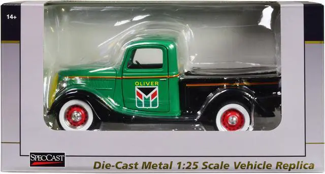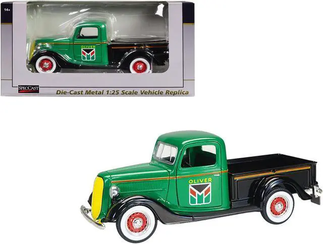 Brand new 1/25 scale diecast car model of 1937 Ford Pickup Truck "Oliver" Green with Black Truck Bed and Fenders die cast model car by SpecCast.