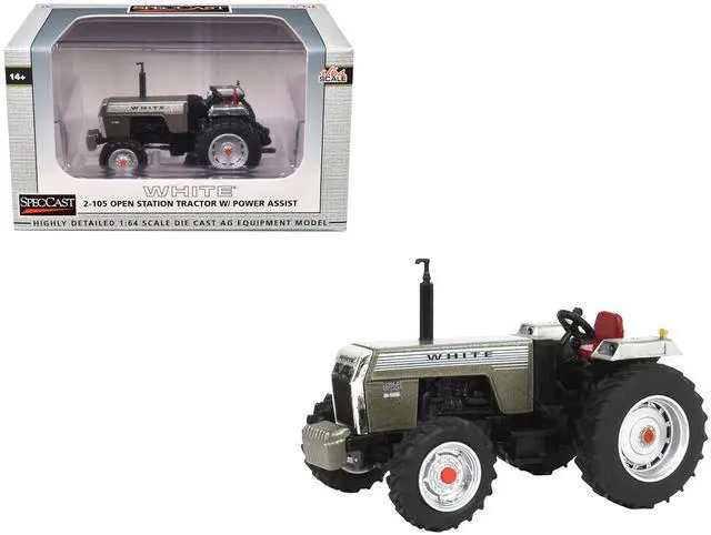 Brand new 1/64 scale diecast model of White 2-105 Open Station Power Assist Tractor Brushed Metal with White Stripes die cast model by SpecCast.
