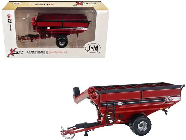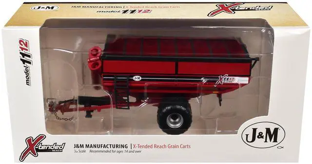 Brand new 1/64 scale diecast model of J&M 1112 X-Tended Reach Grain Cart with Wheels Red die cast model by SpecCast.