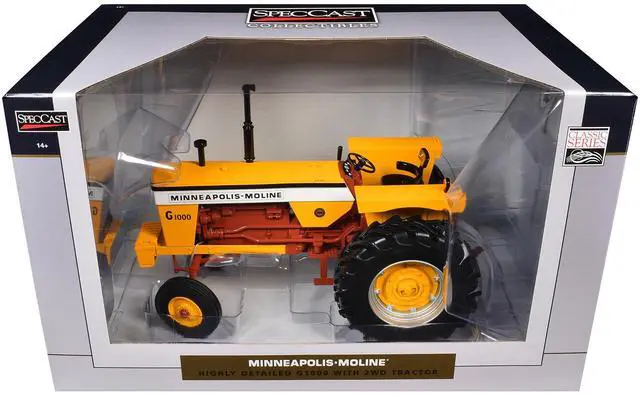 Brand new 1/16 scale diecast model of Minneapolis Moline G1000 Open Station 2WD Tractor Yellow with Brown Frame "Classic Series" die cast model by SpecCast.