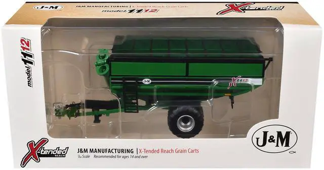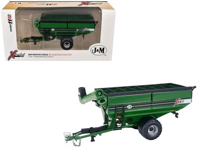 Brand new 1/64 scale diecast model of J&M 1112 X-Tended Reach Grain Cart with Wheels Green die cast model by SpecCast.