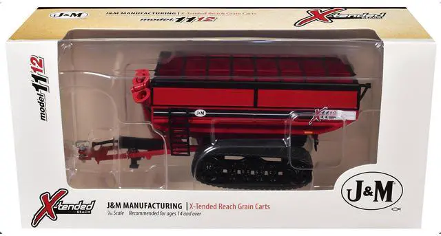 Brand new 1/64 scale diecast model of J&M 1112 X-Tended Reach Grain Cart with Tracks Red die cast model by SpecCast.