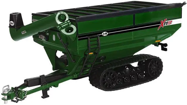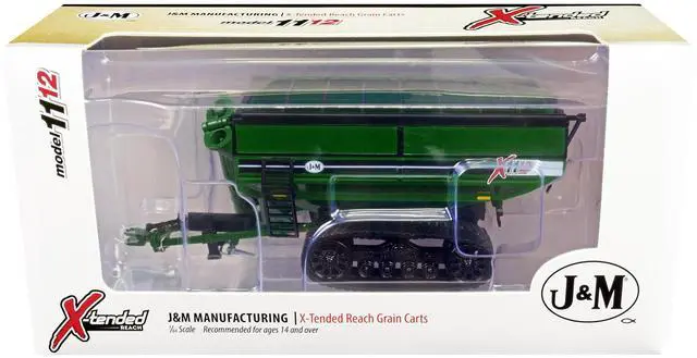 Brand new 1/64 scale diecast model of J&M 1112 X-Tended Reach Grain Cart with Tracks Green die cast model by SpecCast.