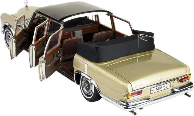 Brand new 1/18 scale diecast car model of 1965-1981 Mercedes Benz 600 Pullman (W100) Landaulet Limousine Convertible with Functional Softtop Gold Limited Edition to 800 pieces Worldwide die cast model car by CMC.