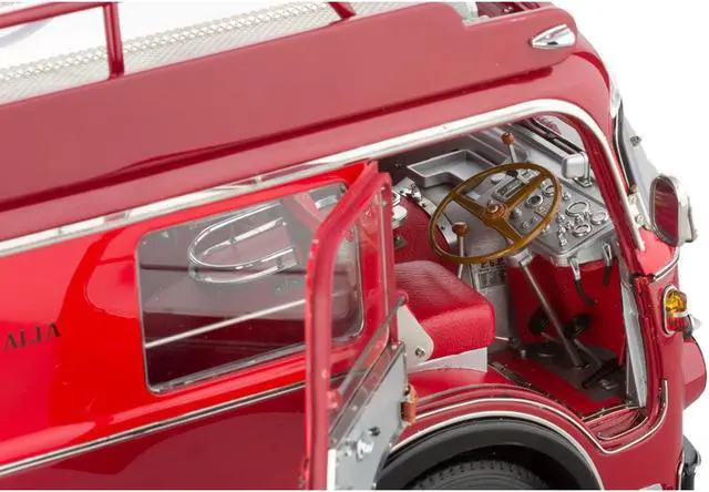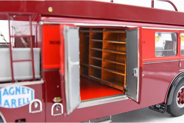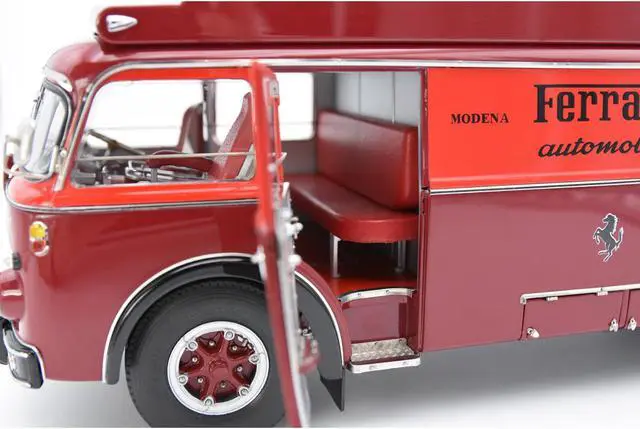 By the mid-1950s, the racing teams of Scuderia Ferrari and Scuderia Maserati had realized that they needed an appropriate means to transport their race cars to European race tracks and back to their headquarters. CMC has created the Ferrari race-car transporter as a high-end replica, featuring superlative craftsmanship that will take model-making to a completely new height.