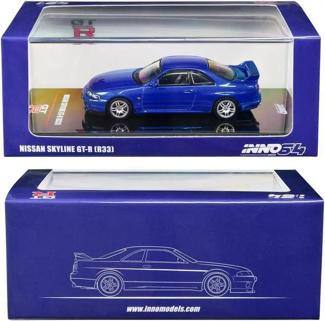 Brand new 1/64 scale diecast car model of Nissan Skyline GT-R (R33) RHD (Right Hand Drive) Bayside Blue Metallic die cast model car by Inno Models.