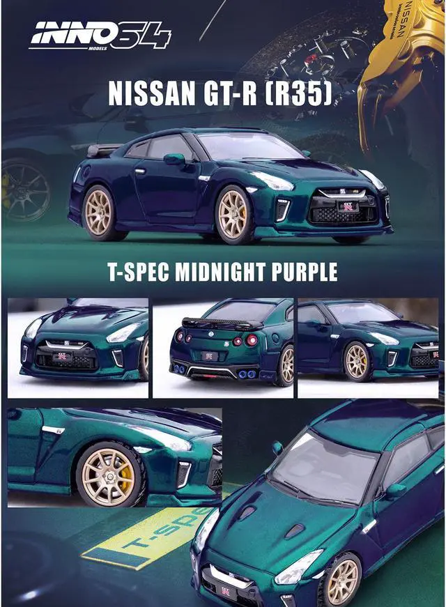 Brand new 1/64 scale diecast car model of Nissan GT-R (R35) T-Spec RHD (Right Hand Drive) Midnight Purple Metallic die cast model car by Inno Models.