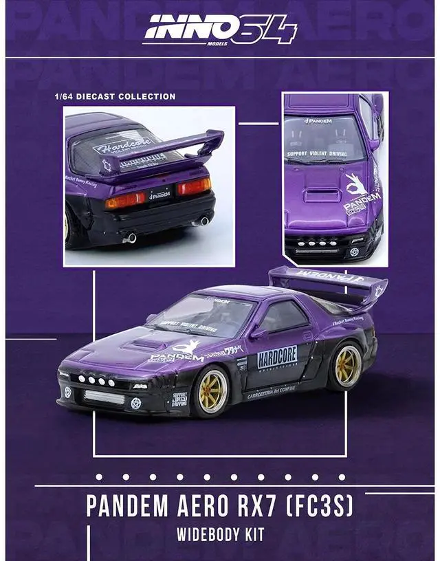 Brand new 1/64 scale diecast car model of Mazda RX7 (FC3S) "Pandem Rocket Bunny" Kit Purple Metallic and Black die cast model car by Inno Models.